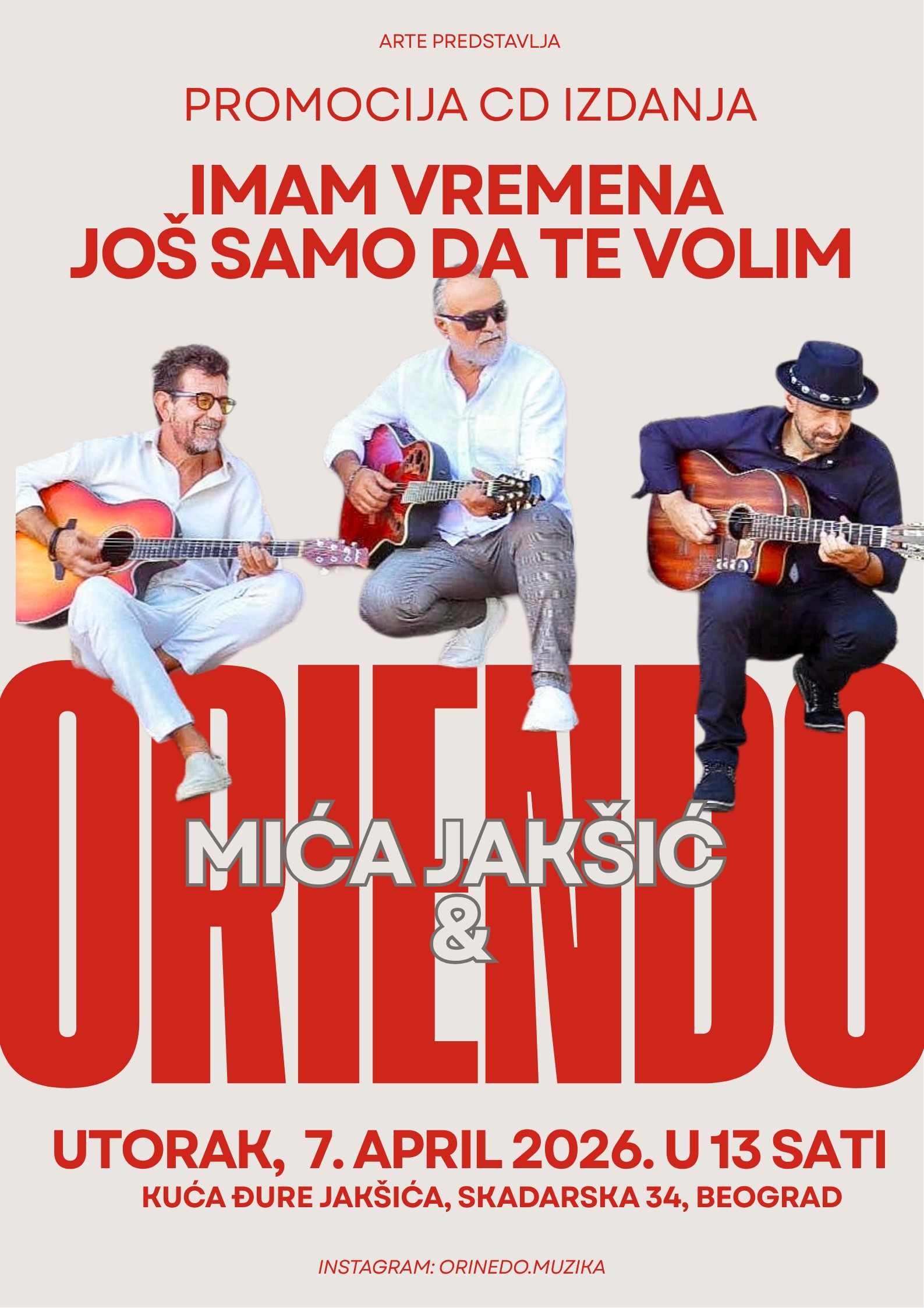 BEOGRAD – Promocija prvog CD izdanja muzičko-poetskog sastava „Mića Jakšić i Oriendo“ biće održana u utorak, 7. aprila, sa početkom u 13 časova, u Kući „Đure Jakšića“ u Skadarliji, u Beogradu.